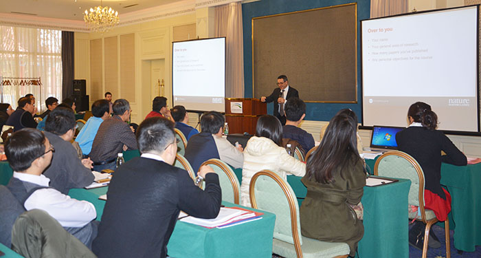 隨后的交流中,兩位大師級的資深編輯,圍繞論文寫作與發表的主題,重點講解了如何將研究成果轉化為科研論文,包括科學論文寫作的關鍵點,以及如何正確使用 學術語言等。同時,對科學出版流程,論文提交流程,以及同行評議流程等做了詳細的講解。對于一些焦點問題,比如如何向高影響力的期刊提交論文,如何與編輯 和評閱人進行溝通等,兩位大師結合自身的豐富工作經歷,與學員進行面對面的傳授經驗。在“Q & A”環節,學員們結合自身撰寫科研論文的經歷或遇到的困惑,與兩位大師開展了熱烈的互動和討論。培訓班反響熱烈,參會學員均表示汲取了經驗,開拓了視野, 受益匪淺,希望以后有機會參與后續的系列講座。