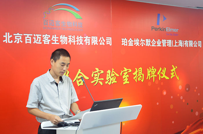 揭牌儀式上,百邁客CEO鄭洪坤在致辭中表示:“百邁客與珀金埃爾默公司建立聯合實驗室,將展開深入合作。雙方將聯合開發更加適用于高通量測序的 自動化文庫構建系統,此舉將大大提升測序前樣品處理的自動化水平,提高百邁客在基因測序行業的競爭力。與此同時,珀金埃爾默公司也將借助百邁客在國內的營 銷體系進一步拓展在中國,乃至亞太地區的市場占有率。珀金埃爾默公司覆蓋全球的業務團隊也將助力百邁客生物云平臺在全球市場的開拓。我相信在雙方共同努力 下,通過真誠密切的實質性合作,聯合實驗室的建設一定會達到互惠雙贏,共同發展的目的,一定會為企業合作塑造新典范,貢獻新經驗。”