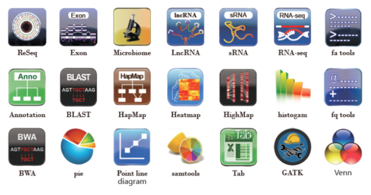 標準化流程分析的集成式App是依據公司多年來進行生物信息分析的經驗,集成了一類生物信息分析所要用到的多個軟件,并讓這些軟件串聯起來,形成一個標準 化的分析流程。標準流程分析出的結果與常規交由公司進行數據處理分析得到的結果一致,以分析報告的形式展示。