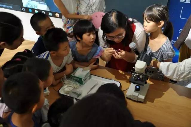 顯微鏡觀察細胞環節,孩子們排起了長長的隊伍,興高采烈地實際動手操作顯微鏡。想必這些小小的腦袋里會留下這樣的嘆號:“原來還有一個肉眼看不到的世界是這個樣子”。