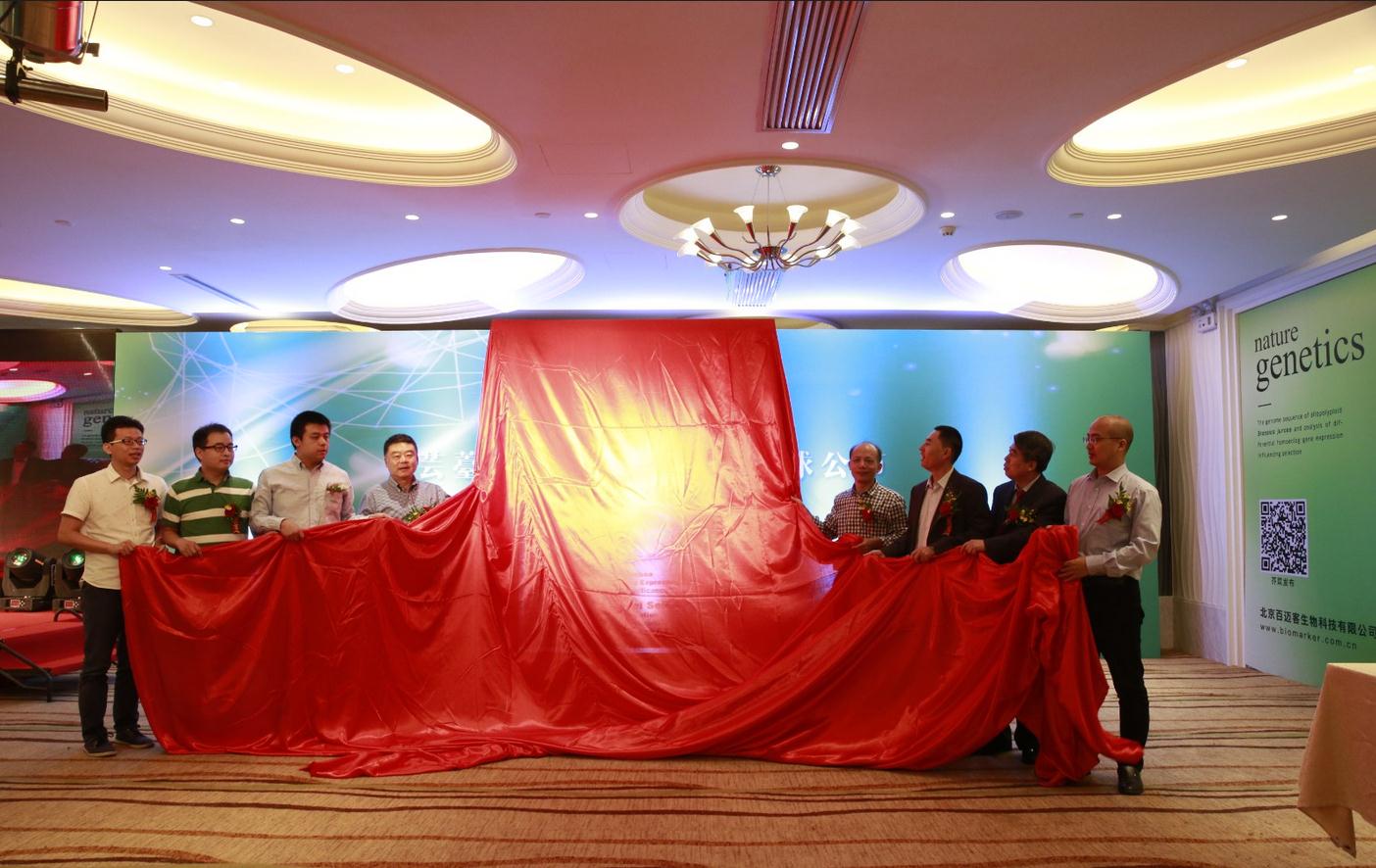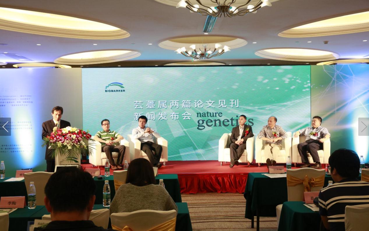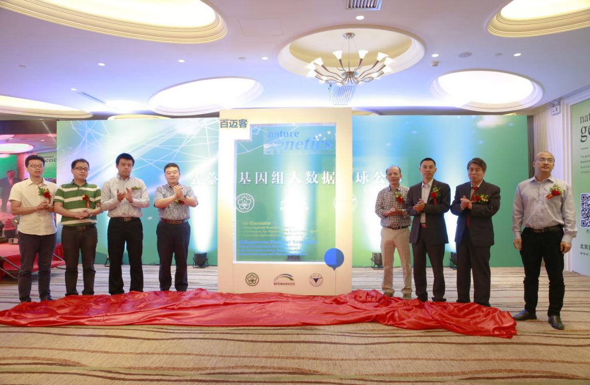 出席發布會領導和嘉賓包括國家科技部重大科學計劃轉錄組研究科學家于軍教授;蕓薹屬白菜和甘藍基因組論文通訊作者和第一作者-中國農業科學院蔬菜花卉 研究所王曉武教授和程峰教授;蕓薹屬白菜和甘藍基因組論文并列第一作南京農業大學侯喜林教授;芥菜基因組論文第一作者—浙江大學蔬菜研究所副所長楊景 華教授;北京百邁客生物科技有限公司創始人兼CEO,白菜和甘藍基因組論文并列第一作者鄭洪坤先生;百邁客聯合創始人之一,芥菜基因組論文并列第一作者劉 東源先生;百邁客芥菜基因組論文并列第一作者紀長綿先生。