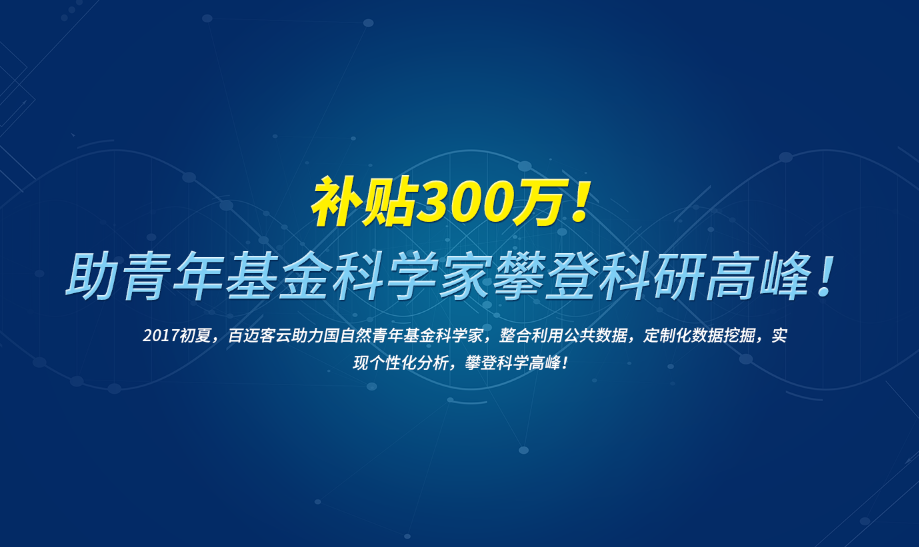 2017初夏,百邁客云助力國自然青年基金科學家,整合利用公共數據,定制化數據挖掘,實現個性化分析,攀登科學高峰!