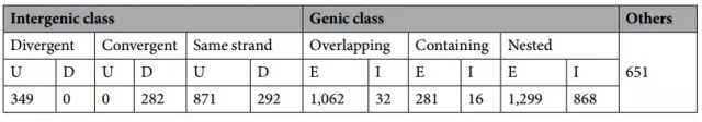 Table 2. 分類非編碼轉錄本(U:上游;D:下游;E:外顯子;I:內含子)