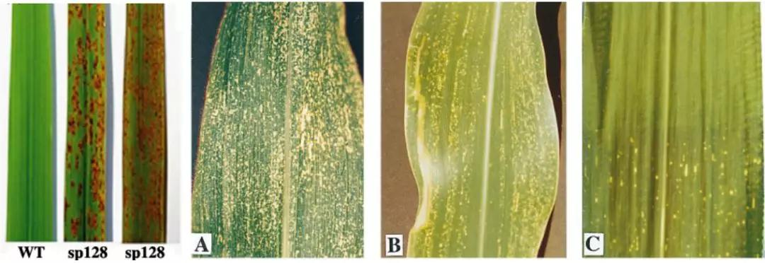 植物類病變(lesion mimic, LM)又稱類病斑,是指在沒有受到任何病原菌侵染的條件下,植物自發產生壞死斑點。這種局部細胞的壞死屬于細胞程序化死亡(PCD),細胞程序化死亡在植物生長發育過程中廣泛存在,特別是受到生物或非生物脅迫,當受到不相容的病原菌感染時,植物可以在受感染的部位啟動某種形式的PCD,以限制病原體的傳播,這是一種先天性的免疫反應,稱為超敏反應(HR)。HR是植物細胞為限制病原菌生長而快速死亡的一種方式,其誘導的細胞死亡可以激發鄰近組織的防衛反應(defense response)和植株的系統獲得性抗性(systemic acquired resistance,SAR)。