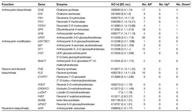 3.藍色和白色風信子中與花青素相關的差異基因