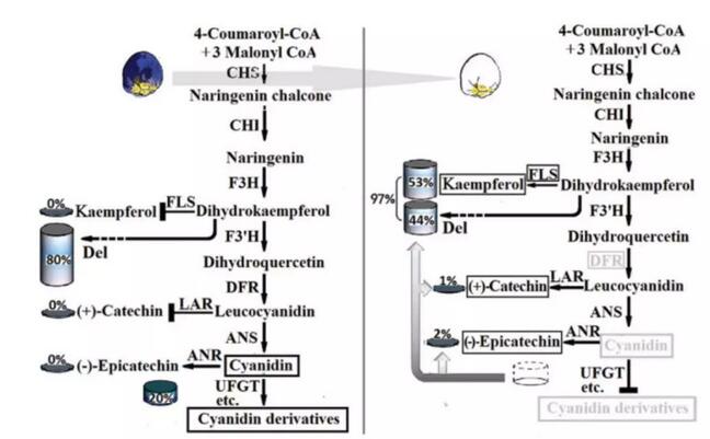 圖1 藍色和白色花中花青素代謝過程通路