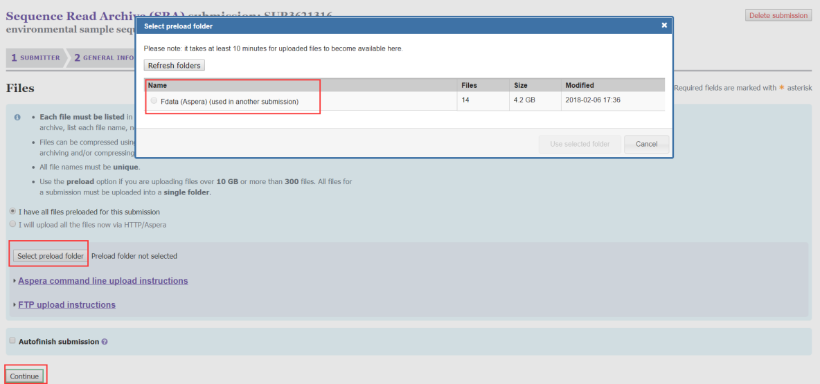 數據上傳完后,點擊Select preload folder就可以看到我們上傳的文件(至少需要等10分鐘后才能看到),然后選擇我們上傳的文件即可完成數據上傳。