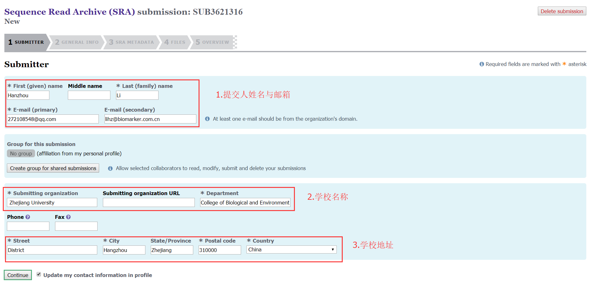第二步:填寫提交人的個人信息和單位信息;