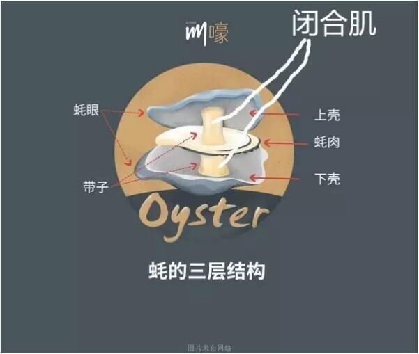 我的第二個待選畢業論文方向是《生蠔為什么這么緊》。眾所周知,生蠔之所以蠣殼禁閉,難以開啟,是因為它有著強悍的閉合肌,(見下圖,圖片來自網絡,)而經我考察文獻研究發現,18世紀之前的生蠔,其閉合肌是遠比現在弱小的,究竟是什么事情造成了那短短幾十年中生蠔的突變?