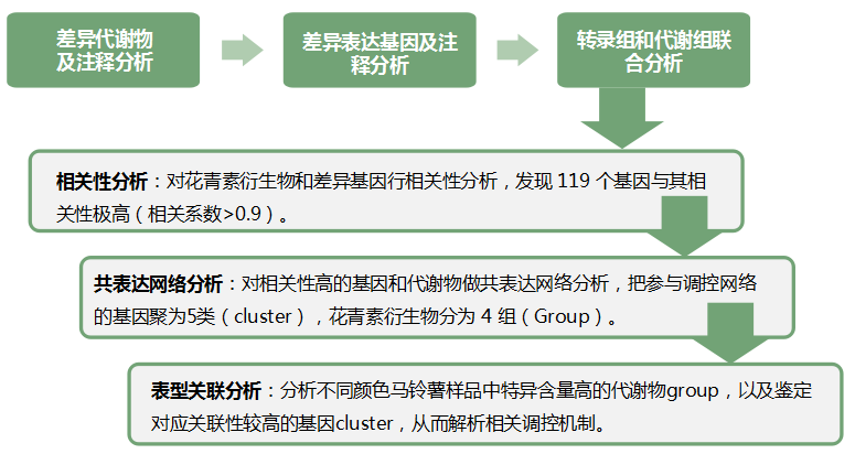 上期小編和大家分享了百邁客成功案例-轉錄組和代謝組解析風信花色變化分子機制,大家可以發現,其中,代謝組并沒有走普通轉錄組項目的套路(基于測序結果,采用生物信息的手段,挖掘決定表型關鍵基因),而是采用靶向檢測幾種代謝物的方法,從代謝組角度進一步驗證兩種花色風信子花青素合成通路相關的基因。那么,隨著代謝組的不斷發展,目前經典代謝組分析方法,更多的是傾向于基于代謝物檢測結果,通過生物信息分析的手段,深入挖掘與表型相關的關鍵代謝物,進而輔助轉錄組挖掘決定表型的關鍵基因。今天,我們通過一篇經典案例,來一探轉錄組和代謝組聯合分析的套路。