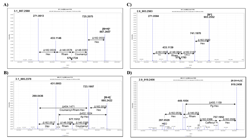 圖3 黃酮類化合物的二級質譜分析