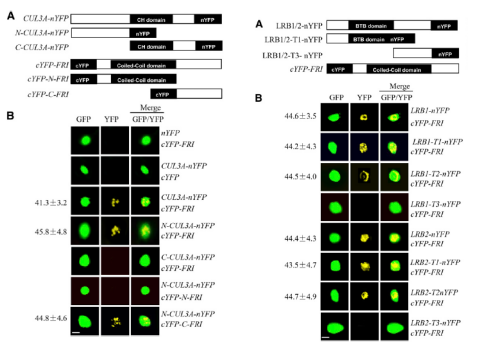 之后在體內,用BiFC在體內驗證定位、酵母雙雜交、GST pull-down結果,用co-IP分析瞬時表達FRI和CUL3A再次驗證相互作用。