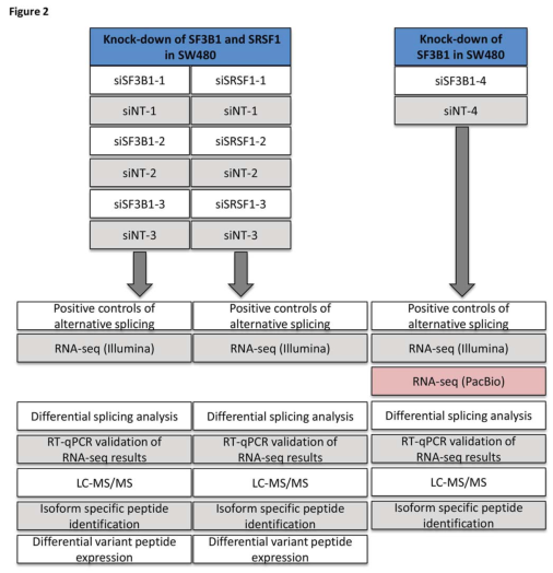 為了驗證能通過splicify得到的isoform,同時增加新的轉錄本,Iso-seq被用于在SW480細胞中SF3B1的下調和siNT對照(如圖2所示)的檢測中。
