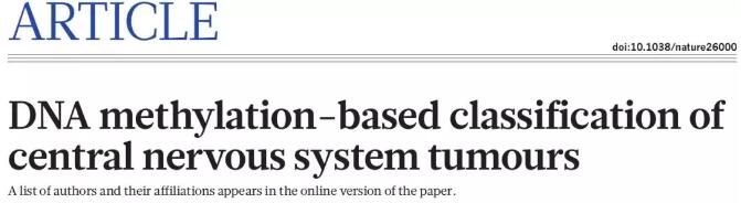 2018年3月14號,德國海德堡大學醫院神經病理學系等機構的專家,在Nature雜志上提出了一個全面的基于DNA甲基化對中樞神經系統腫瘤分類方法。他們發現相比于常規方法,顯著提高了準確性,修正了12%病例的初始組織病理學診斷結果。