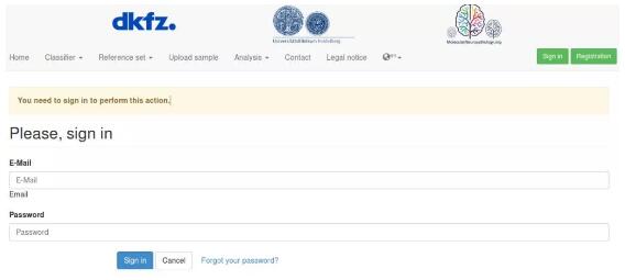 該網站可用于大多數中樞神經系統腫瘤基于DNA甲基化進行分子分型。首先生成并上傳您感興趣的腫瘤450K甲基化芯片或者EPIC芯片未經處理的IDAT文件,隨后將自動與2800多種神經病理學腫瘤甲基化數據(目前包括80多種腫瘤類型或亞型)進行比較。幾分鐘內,即可通過email收到您所提供的病例的甲基化圖譜報告、根據芯片數據計算的低分辨率拷貝數CNV圖以及預估的MGMT啟動子甲基化狀態。