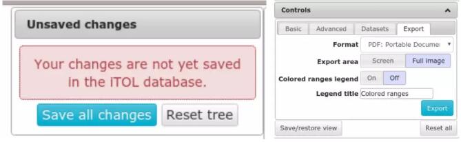 3、系統進化樹的調整,導入進化樹后,右上角會出現一個control面板,該面板包含【Basic】、【Advanced】、【Datasets】、【Export】三個標簽項。常進行進化樹展示的朋友對【Basic】、【Advanced】和【Export】三個標簽項的內容和操作應當熟練掌握。