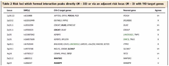 捕獲Hi-C測序鑒定33個乳腺癌風險基因座潛在的110個靶基因