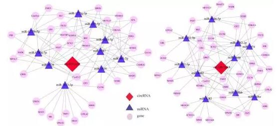在本研究中,為了評估circRNA在人體內的作用,作者采用了高通量測序方法,測定TLE患者和非TLE患者顳葉新皮質中circRNA表達水平,并對環狀RNA的功能進行了注釋。作者描述了一個包含潛在基因與circRNA-miRNA的網絡。