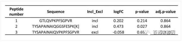 通過對剪接特異肽段進行差異表達分析,揭示了這些肽的子集在實驗組和對照組之間有顯著差異,指出了mRNA基因組和蛋白質組結果之間的一致性事件(如表4所示)。