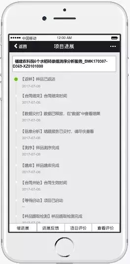 3.完成上述兩個步驟就可以隨時隨地通過手機“我的項目”查看進展了