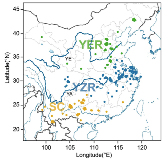 共計選擇了243份二倍體棉花材料:230份亞洲棉G. arboreum (A2) ?和13份草棉G. herbaceum (A1);材料來源:中國南部(SC),長江(YZR)和黃河(這些區域代表了中國二倍體棉花大部分的表型和地理多樣性)。