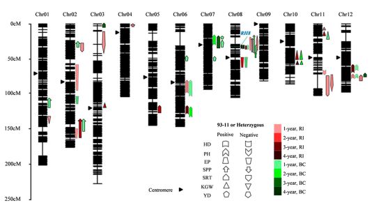 實驗材料:Peiai64S (PA64S) × 93-11為親本;219株RIL群體;219株RILBC1群體;361個商業雜交水稻種(125個兩系雜交種和236個三系雜交種)。