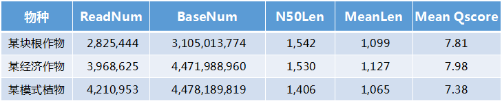 raw data數據量為2.5~4.4Gb,reads數為2.8~3.9M,其中N50在1.5kb 左右,平均長度為1.0kb,平均質量值Q7以上。質控后,基因組比對率在85%左右。不同片段長度的轉錄本均已達到飽和,可使用Nanopore 進行定量分析。