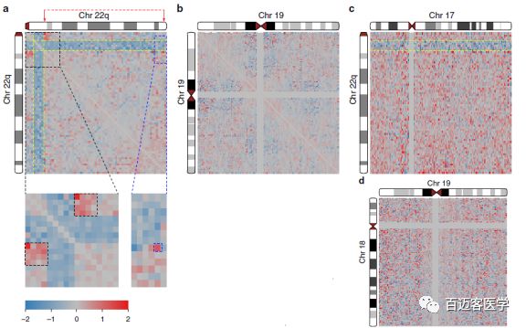 在這篇文章中,作者以一組來自22q11DS患者的淋巴母細胞樣細胞系(LCL)為研究材料,研究了染色體22q11.2和染色體1q21.1上顯著的大片段缺失CNV對表觀基因組的影響。作者使用Hi-C分析遠距離染色體互作,也包括單倍型特異性Hi-C分析,使用ChIP-Seq分析組蛋白標記,使用RNA-Seq分析基因表達模式。結(jié)果表明,染色體22q11.2上大片段的、常見的、與疾病密切相關(guān)的CNV以幾種不同的方式影響染色質(zhì)標記、染色質(zhì)結(jié)構(gòu)域和遠距離染色體互作以及基因的表達。這些發(fā)現(xiàn)揭示了這樣的大片段基因組缺失是如何改變?nèi)旧w結(jié)構(gòu)、影響基因組分子活性的基本機制。