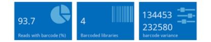 在加入barcode序列混樣測序的情況下,barcode識別區分的結果展示如下,包括barcode識別效率,區分的文庫個數及每個文庫中序列個數占比和長度信息等。
