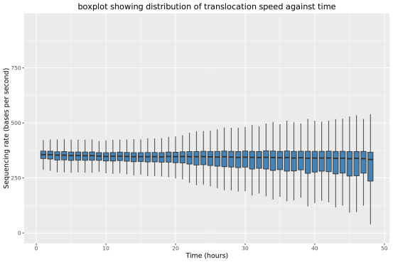 此部分內容統計了隨測序時間變化,測序累計序列個數,堿基個數,測序速度和有效工作納米孔數等指標的變化情況。