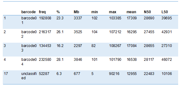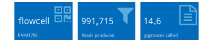 展示了數據產出的總體情況(如下圖,本分析中堿基識別共產出991,715條序列,14.6G堿基)。