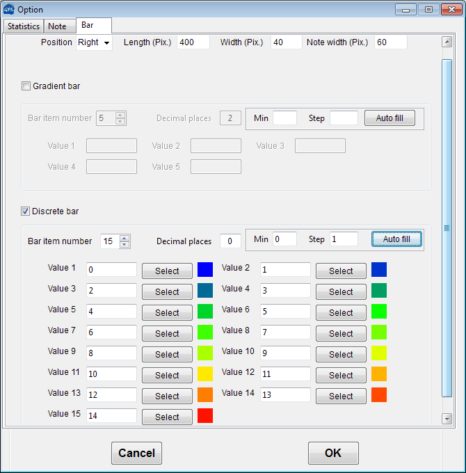 定義顏色標尺連續或不連續,右鍵Set up bar;Set up statistic: 設置繪制此熱圖使用到的數學上的屬性(歸一化和聚類方法),一般二代數據選擇對數歸一化方式。