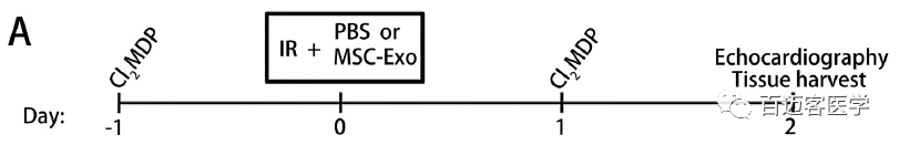 在心肌缺血/再灌注(I/R)之前和之后24小時施用巨噬細(xì)胞清除劑-二氯亞甲基二膦酸鹽(Cl2MDP)脂質(zhì)體,再灌注后0h立即遞送MSC-Exo或PBS在至心肌。檢測梗塞面積以及心臟和血清中的炎癥水平等;