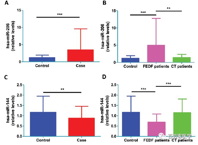 4、qRT-PCR驗(yàn)證DEmiRNA表達(dá)及其靶基因表達(dá)驗(yàn)證: