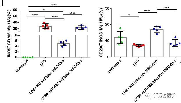 MSC-Exo-miRNA-seq揭示miR-182可能作為巨噬細(xì)胞極化的有效候選介質(zhì),以及其下游靶基因TLR4。敲低MSC-Exo中miR-182部分減弱其對巨噬細(xì)胞極化的調(diào)節(jié),TLR4的敲低也賦予心肌I/R小鼠模型中的心臟保護(hù)功效并降低炎癥水平。