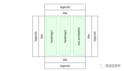 單個熱圖由熱圖主體和熱圖組件組成。 熱圖主體可以按行和列分割。 熱圖組件是標題,樹形圖,矩陣名稱和熱圖注釋,它們放在heamap體的四個側面上。