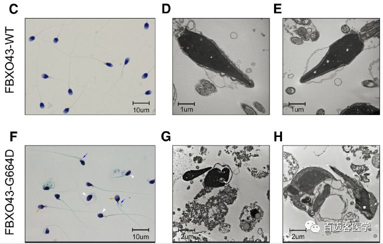 為了評估更廣泛人群中FBXO43的突變,對散發不孕患者和未受累對照進行了FBXO43基因突變篩查。所有散發不孕的患者均為甘肅省漢族人。主要的異常是無定形精子頭,具有可變比例的空泡和過剩的殘留細胞質。其他精液參數因不同患者而異,包括不同的精子濃度水平(41.61±32.48×106/ml)和不同精子活力(45.397%±22.83%)。