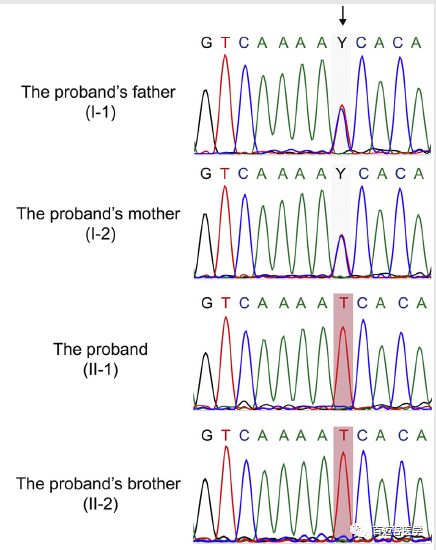 對兩兄弟及其父母進行了全外顯子組測序WES,平均覆蓋深度為120×,目標區域覆蓋度為99.87%。排除在任何變異數據庫中MAF>0.05的變異,錯義突變、無義突變、移碼突變和剪接位點突變等優先保留。此外,SIFT、PolyPhen-2和Mutation Taster等同時預測為具有潛在有害性的變異也被保留用于進一步評估。