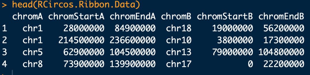 #?數據內容如上圖,第一列?染色體編號;第二列?聯系位點在染色體片段的起始位點;第三列?聯系位點在染色體片段的結束位點;第四列?聯系位點在所在的另一個染色體編號;第五列?聯系位點在所在的另一個染色體片段的起始位點;第六列?聯系位點在所在的另一個染色體片段的結束位點