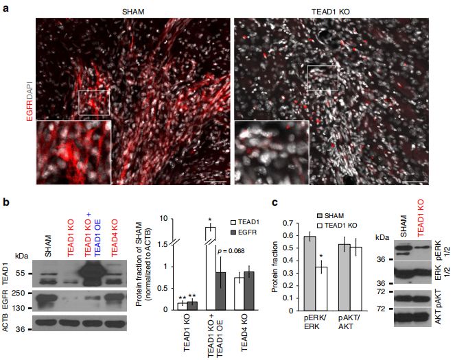 CRISPR-Cas9基因敲除與過表達(TEAD1、TEAD4、EGFR等);RNA-seq;體外–細胞增殖與遷移實驗;體內–異種移植實驗;染色質免疫沉淀實驗等。
