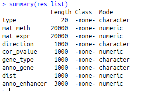 #rds格式是一種保存了數據的數據類型和結構的格式,可以用函數saveRDS()來生成這種格式的文件。meth.rds文件來自R包示例文件,如需查看這個文件中都是什么,請參考(看不清熱圖的聚類結果怎么辦)的方法。另外,文件中只包含了DMR關聯基因的甲基化和表達量呈現負相關的DMR