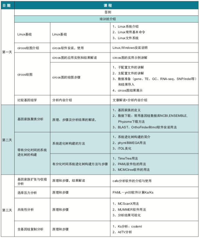 隨著測序技術的發展及測序成本的降低,越來越多的物種完成了基因組的組裝,這為多物種比較基因組學分析提供了大量的可用基因組資源。為了協助科研工作者對基因組結果進行深度挖掘,本次培訓將從基礎生信操作開始,從已發表的NG、NC等高水平文章入手,帶領大家學習比較基因組學常用的分析方法,從而滿足文章后期發表的需求,同時也為我們生物信息科學工作者們提供一個互相交流的平臺。