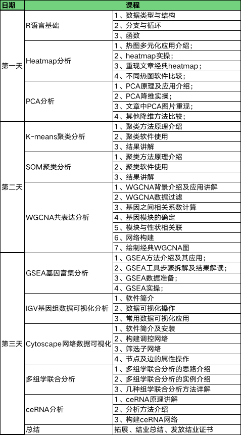 隨著測序技術(shù)的發(fā)展及測序成本的降低,轉(zhuǎn)錄組分析逐漸發(fā)展成為基一項(xiàng)礎(chǔ)的分析方法。越來越多的科研項(xiàng)目中使用轉(zhuǎn)錄組數(shù)據(jù)分析來做為分析的支持手段之一。為了協(xié)助科研工作者對轉(zhuǎn)錄組測序數(shù)據(jù)進(jìn)行深度挖掘,本次培訓(xùn)將從常用的個性化分析軟件操作入手,帶領(lǐng)大家學(xué)習(xí)轉(zhuǎn)錄組分析中常用的分析方案及實(shí)現(xiàn)方法,從而滿足文章后期發(fā)表的需求,同時(shí)也為我們生物信息科學(xué)工作者們提供一個互相交流的平臺。