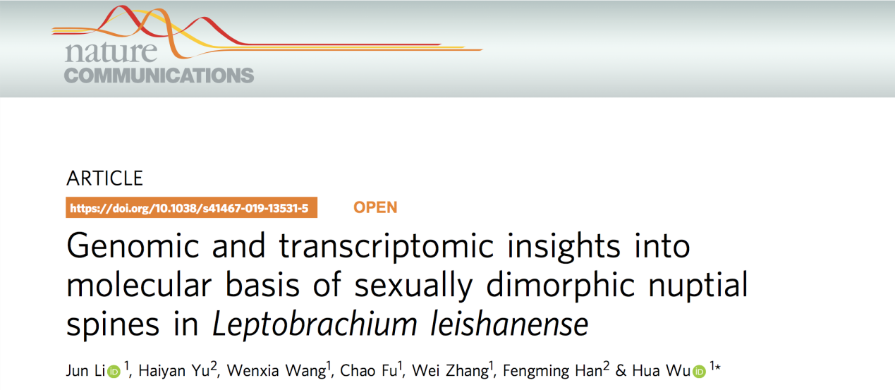 2019年12月5日,國際知名期刊Nature Communications (《自然·通訊》)在線發(fā)表了由華中師范大學與北京百邁客生物科技有限公司共同合作文章“Genomic and transcriptomic insights into molecular basis of sexually dimorphic nuptial spines in Leptobrachium leishanense”。華中師范大學生科院吳華教授為本文通訊作者,華中師范大學生科院李軍博士為論文的第一作者,百邁客生物科技作為第二單位共同參與研究。本研究借助二代、三代PacBio和HiC技術組裝了我國特有物種雷山髭蟾(Leptobrachium Leishanense)高質(zhì)量基因組,通過比較基因組學分析及雌雄個體不同發(fā)育時期的有參轉(zhuǎn)錄組分析鑒定了一系列與角質(zhì)刺性二態(tài)發(fā)育相關的生物學通路和關鍵基因。研究成果首次較全面地解析了兩棲動物性二態(tài)形成相關的重要生物學通路以及關鍵基因,彌補了相關研究的不足。該成果不僅為兩棲動物基因組數(shù)據(jù)庫提供了高質(zhì)量的參考基因組,而且對于深入理解脊椎動物性二態(tài)形成及調(diào)控的分子機制具有重要意義。