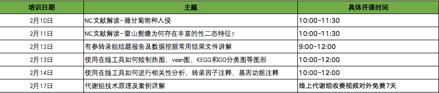 來來來,看這里,還有一個假期漲知識的免費福利袋,自2月10號開始,連續(xù)5天,我們的技術(shù)同事與你一起從NC文章入手到結(jié)題報告、常見圖表的實現(xiàn),讓你在家也可輕松漲知識。具體內(nèi)容及時間安排:
