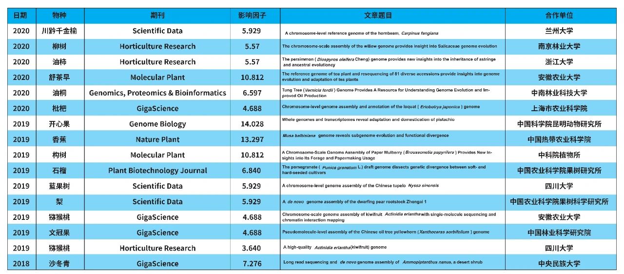 林木基因組雜合度高,此外大基因組的針葉樹和一些多倍體的樹種難以獲得高質量的基因組序列,北京百邁客生物科技有限公司擁有豐富的基因組組裝經驗,尤其對高雜合,大基因組及多倍體植物基因組研究中獨具優勢,由北京百邁客新推出的ONT+PB CCS的雙平臺組裝策略贏得了眾多老師的好評,針對林木基因組組裝更具優勢,目前公司僅林木類基因組合作文章發表20余篇,累計影響因子達116+,而正是這些高質量林木基因組的破譯,將打破林木基因組育種中的瓶頸,為育種研究奠定了深厚的基礎。