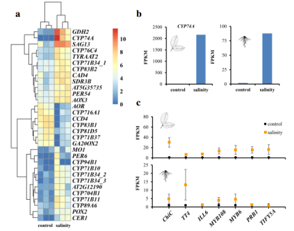 研究結果:轉錄組研究分析發現編碼幾丁質酶的基因和參與 JA 生物合成途徑的基因可能有助于開心果適應鹽水環境。
