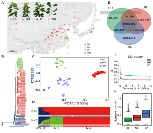 群體進化研究:群體材料選擇(重測序:~15.6X):134份桑樹種質(132份栽培種,來自中國和日本;2份野生種,來自中國陜西);