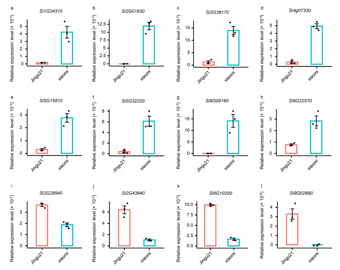 (注:這些蛋白質編碼基因命名:Si(代表“小米”),其次是染色體數目和染色體上的基因數,例如,1號染色體上的第一個和第二個基因分別命名為Si1G00010和Si1G00020)
