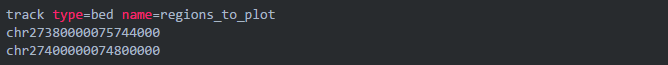 多組學分析的時候經常會對相同的文件繪制不同的區域,pyGenomeTracks可生產一個region.bed文件,進而對相同的文件繪制不同的區域: